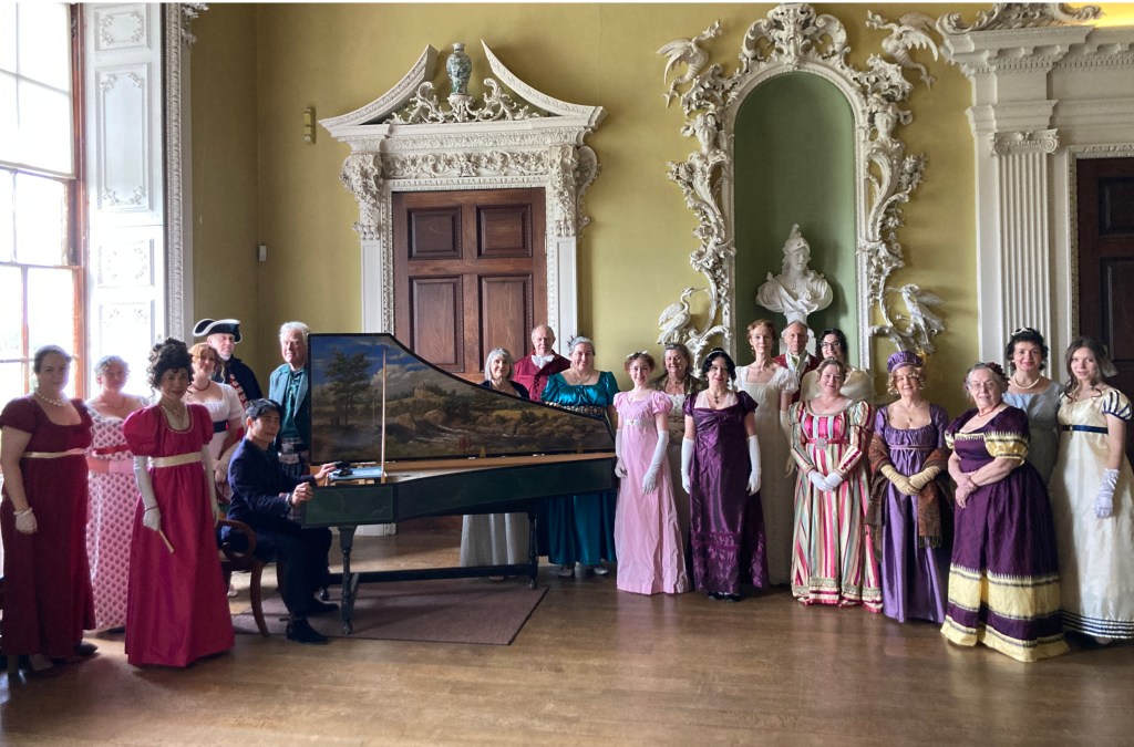 Georgettes of Oxford filming with the BBC at Claydon House – National Trust dancing to the music of Charivari Agréable. For the article and video please click here